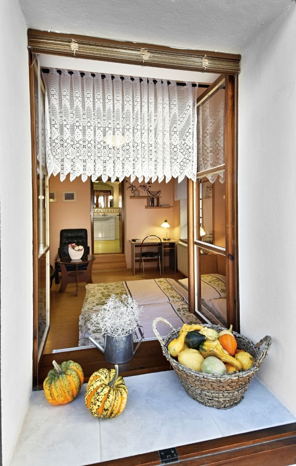Penzion nabízí útulné pokoje s veškerým zázemím a přímým výhledem na Litomyšl takovou, jakou ji znáte z pohlednic – věže, zámek, klášterní zahrady. Pokoje nejsou jen na přespání. Jsou to malé klidové zóny, kde si po dni na nohou odpočinete bez kompromisů. Ráno si dáte snídani na terase, večer si sednete s knihou nebo sklenkou vína – a mezi tím vás čeká město, které má pořád co nabídnout.